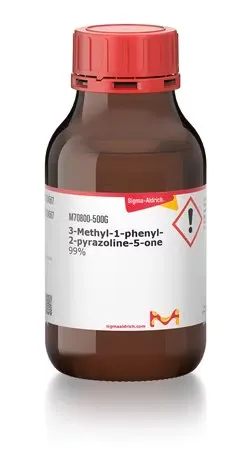 3-Метил-1-фенил-2-пиразолин-5-он (CAS 89-25-8) — органическое соединение с формулой C₁₀H₁₀N₂O. Также известен как Эдаравон. Это бесцветное или белое кристаллическое вещество с температурой плавления 155-158°C. Растворимо в этаноле, ацетоне и диметилсульфоксиде, но плохо растворимо в воде. Широко применяется в фармацевтической промышленности как нейропротекторное средство, а также в химическом анализе благодаря своим производообразующим свойствам. Обладает антиоксидантным действием и способностью улавливать свободные радикалы, что делает его ценным компонентом в исследованиях окислительного стресса.