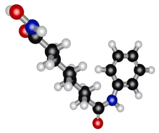 Вориностат (SAHA) — это органическое соединение с химической формулой C₁₄H₂₀N₂O₃, широко известное как ингибитор гистондеацетилазы. Применяется в медицинских исследованиях для изучения механизмов эпигенетической регуляции генов. Физические свойства: белый или почти белый кристаллический порошок, растворимый в диметилсульфоксиде (ДМСО), этаноле и метаноле, но плохо растворимый в воде. Интересный факт: Вориностат был первым одобренным FDA ингибитором гистондеацетилаз для лечения кожных проявлений Т-клеточной лимфомы.