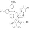 Фосфорамидит ДМТ-дТ относится к классу фосфорамидитов ДНК. Ключевые особенности стандартных защищённых фосфорамидитов ДНК включают: экзоциклические аминогруппы защищены бензоилгруппой (dA(bz) и dC(bz)) или изобутирилгруппой (dG(ib)). Рекомендуемые условия снятия защиты и отщепления — 8 часов при 55°C или 24 часа при комнатной температуре с использованием концентрированного раствора аммиака для стандартных олигонуклеотидов с защищёнными основаниями. Высокая эффективность связывания фосфорамидитов ДНК от НПО ЭкоТек обеспечивает получение олигонуклеотидов высокого качества и выхода. Фосфорамидит ДМТ-дТ — это ключевой реагент в автоматизированном синтезе ДНК по фосфорамидитному методу. Его используют для введения тимидиновых нуклеотидов в растущую цепь ДНК. Соединение содержит 4,4′-диметокситритильную (ДМТ) защитную группу на 5′-гидроксиле, что позволяет контролировать ступенчатый синтез. На 3′-конце расположена фосфорамидитная группа, активируемая тетразолом для образования фосфодиэфирной связи. Молекула также содержит β-цианоэтильную группу, защищающую фосфат от побочных реакций. Применение высокоочищенных фосфорамидитов критически важно для получения длинных олигонуклеотидов с минимальным количеством ошибок.
