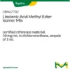 Данный Сертифицированный Эталонный Материал (CRM) произведен и сертифицирован в соответствии со стандартами ISO 17034 и ISO/IEC 17025. Вся информация по применению данного CRM содержится в сертификате анализа. Смесь метиловых эфиров линолевой кислоты представляет собой стандартный образец для калибровки газовых хроматографов, масс-спектрометров и другого аналитического оборудования. Она широко используется в научных исследованиях и контроле качества для точной идентификации и количественного определения жирных кислот в различных образцах.