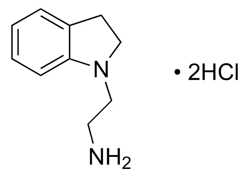 1-(2-Аминоэтил)индолин дигидрохлорид — это органическое соединение, которое представляет собой соль дигидрохлорида аминоэтилированного производного индолина. Это кристаллическое вещество белого или светло-бежевого цвета, растворимое в воде и полярных органических растворителях. Химическая формула соединения — C₁₀H₁₄N₂ · 2HCl. Вещество проявляет свойства амина и может использоваться в органическом синтезе как строительный блок для создания более сложных молекул. Благодаря наличию аминоэтильной группы оно способно образовывать водородные связи и участвовать в реакциях конденсации. НПО ЭкоТек предлагает высокочистый продукт для научных исследований и фармацевтического синтеза.