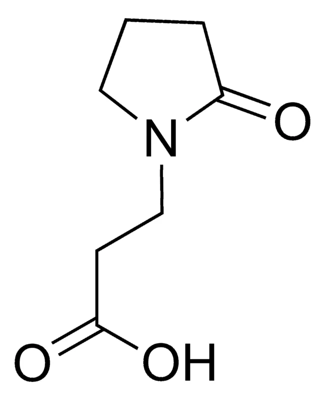 3-(2-оксопирролидин-1-ил)пропановая кислота — органическое соединение, относящееся к классу N-ацилпирролидонов. Имеет вид белого кристаллического порошка. Химическая формула: C7H11NO3. Молекулярная масса: 157,17 г/моль. Вещество обладает умеренной растворимостью в воде и полярных органических растворителях. Основная сфера применения — синтез фармацевтических субстанций, в частности ноотропных препаратов и модуляторов нейротрансмиттеров. Используется как строительный блок для создания сложных биологически активных молекул. Соединение проявляет хелатирующие свойства по отношению к ионам металлов. При работе рекомендуется соблюдать стандартные меры предосторожности для химических реактивов.