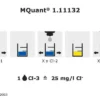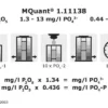 Метод: колориметрический с цветовой шкалой 0.1 — 0.3 — 0.5 — 1.0 — 2.5 — 5.0 — 7.5 — 12.5 — 25 — 50 мг/л Fe MQuant®. Тест MQuant® на железо (ранее MColortest®) определяет двухвалентное и трёхвалентное железо в растворённой форме, а также свежеколлоидное железо(III)гидроксидное соединение в таких средах, как: грунтовые и поверхностные воды; воды аквакультуры; питьевая и минеральная вода; промышленные воды; сточные воды и перколяты; котловая и питательная вода котлов, охлаждающая вода; пищевые продукты (например, вино) после соответствующей пробоподготовки. Тест не подходит для анализа морской воды. Рекомендуется как предварительный тест при определении кислорода с MQuant® Oxygen 1.11107 для проверки на наличие железных помех в пробе. Оценка цветной реакции основана на методе проходящего света, что позволяет анализировать мутные и окрашенные пробы без дополнительной подготовки. Цветовая шкала изготовлена из особо прочного светостойкого пластика, пригодного для промышленных условий и влажных помещений. Все ионы железа восстанавливаются хлоридом гидроксиламмония до ионов железа(II). В буферной среде они реагируют с 2,2′-бипиридином с образованием красного комплекса. Концентрация железа определяется полуколичественно визуальным сравнением окраски раствора с цветными зонами шкалы. Без добавления хлорида гидроксиламмония (реагент Fe-1) тест определяет только железо(II), что позволяет проводить дифференциацию. Использование перезаправляемого блока 1.08023 со всеми реагентами значительно увеличивает срок службы оригинального набора, делая систему экономичной и экологичной. Разработано НПО ЭкоТек.
