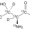 L-Серин-¹³C₃,¹⁵N,2,3,3-d₃ — это стабильно меченый изотопный аналог аминокислоты серина, где атомы углерода заменены на изотоп ¹³C, атом азота — на ¹⁵N, а атомы водорода в положениях 2,3,3 — на дейтерий (D). Соединение обладает высокой изотопной чистотой: 98 ат.% D, 99 ат.% ¹³C, 98 ат.% ¹⁵N и химической чистотой 95% (CP). Меченый серин применяется в качестве внутреннего стандарта в масс-спектрометрии для количественного анализа биологических образцов, в исследованиях метаболизма белков, кинетики ферментативных реакций и в исследованиях методом ЯМР. Благодаря стабильным изотопным меткам, он позволяет точно отслеживать биохимические процессы без радиоактивного излучения. Физически представляет собой белый кристаллический порошок, растворимый в воде. Точная молекулярная формула: HO¹³CD₂¹³CD(¹⁵NH₂)¹³COOH.