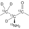 L-Треонин-¹³C₄,¹⁵N,2,3,4,4,4-d₅ — высокоочищенный изотопно-меченый аминокислотный стандарт, обогащённый стабильными изотопами углерода-13 (99 ат.%), азота-15 (98 ат.%) и дейтерием (98 ат.%). Содержит 5 атомов дейтерия в позициях 2,3,4,4,4, четыре атома углерода-13 и атом азота-15. Продукт химической чистоты (CP) 95% идеально подходит для использования в масс-спектрометрии и ЯМР-спектроскопии в качестве внутреннего стандарта. Треонин — незаменимая аминокислота, играющая ключевую роль в синтезе белков и функционировании иммунной системы. Меченый изотопами треонин применяется в исследованиях метаболизма, фармакокинетики и протеомного анализа.