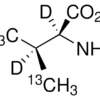 L-валин-¹³C,d₅ — это стабильно изотопно меченная аминокислота, где атом углерода в метильной группе замещён на ¹³C, а пять атомов водорода (в положениях 2,3,4,4,4) замещены на дейтерий (D). Продукт соответствует следующим стандартам качества: ≥97% атомная доля ¹³C, ≥90% атомная доля D, химическая чистота ≥95%, оптическая чистота ≥98% (по α-углероду). Это ключевой реагент для исследований с использованием изотопного мечения в биомедицинских и экологических науках. В отличие от обычного валина, он позволяет точно отслеживать метаболические пути и кинетику.