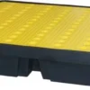 Функциональный контейнер с решеткой для сбора разлива жидкостей с последующим ее сбора при помощи абсорбирующих или обтирочных салфеток, возврата жидкости в тару для хранения. Прочный стойкий пластик. Решетка желтого цвета, поддон черного цвета.