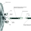 Пневмозаглушка представляет собой полую цилиндрическую оболочку с двумя плоскими днищами, на одном из днищ которой расположен вентиль для заполнения оболочки сжатым воздухом с закрепленной на нем скобой или серьгой, на другом — проушина для фиксации пневмозаглушки в трубе при стравливании сжатого воздуха из оболочки и сходе воды, накопившейся за ней в процессе проведения ремонта. Вентиль, скоба и проушина изготовлены из нержавеющей стали.