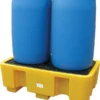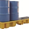 Поддон с решеткой для размещения до 4-х бочек или иной тары. ГСМ, ТЖ емкость 250 л, нагрузка на решетку до 1250 кг. Сбор разлива в поддон с вырезом под вилы погрузчика. Поддон перемещать только при снятой таре. Известен также как поддон P4L или П4Н или П4НШ.